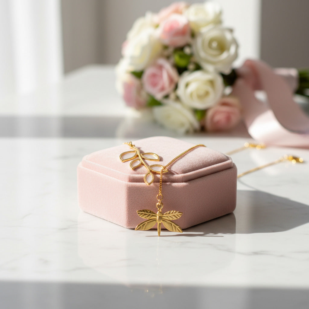 This intricately designed Cute Dragonfly & Leaves Necklace draws inspiration from the natural world and adds a touch of uniqueness to any outfit. The use of premium materials, such as 925 silver dipped 5x in 18k yellow gold, guarantees exceptional strength and longevity, setting it apart from other pieces. Prepare to receive compliments and admiration as all eyes are drawn to this stunning necklace.