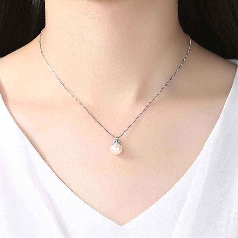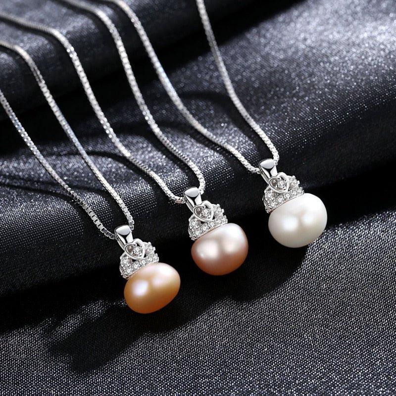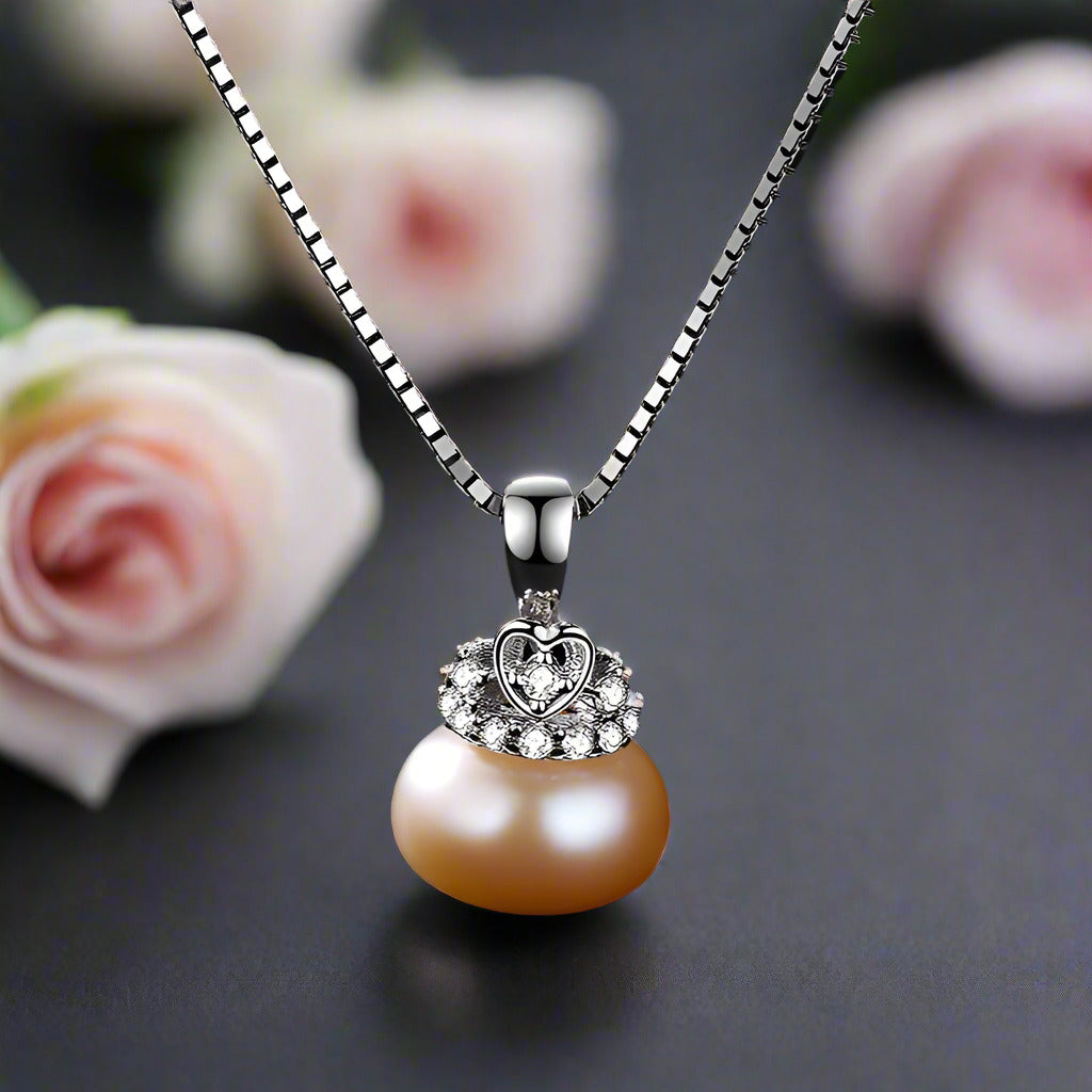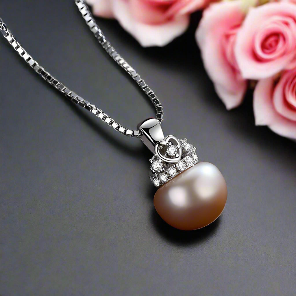 Cute Heart Crown Fresh Water Pearl Pendant Necklace