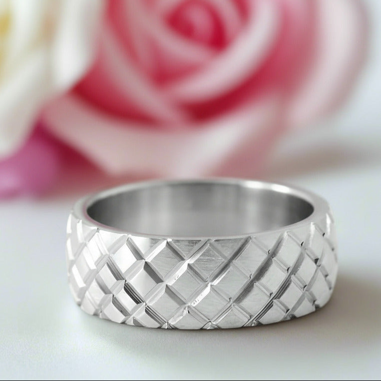 Diamond Pattern Stainless Steel Men's Wedding Band