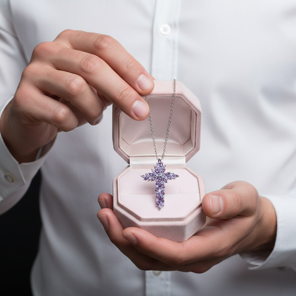Elegant Amethyst and Tanzanite Marquise-Cut Cross Pendant Necklace