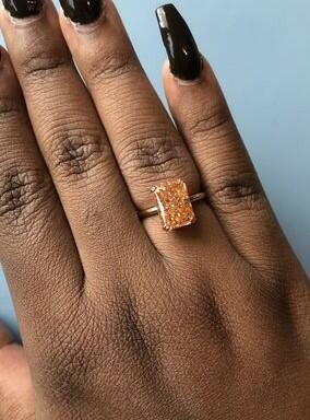 Elegant rose gold engagement ring featuring a hand-cut champagne simulated diamond with brilliant sparkle. Handcrafted setting offers durability and comfort for everyday wear. Perfect for engagements, weddings, or anniversaries. Includes 1 year warranty and 30 days guarantee.