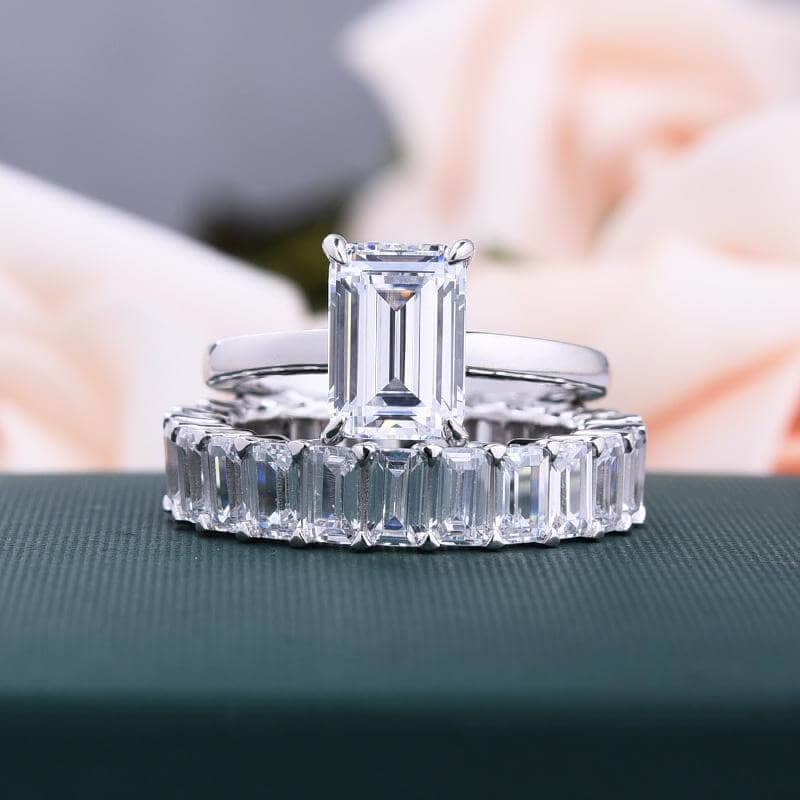Emerald Cut Solitaire Diamond Wedding Ring Set