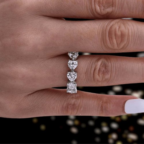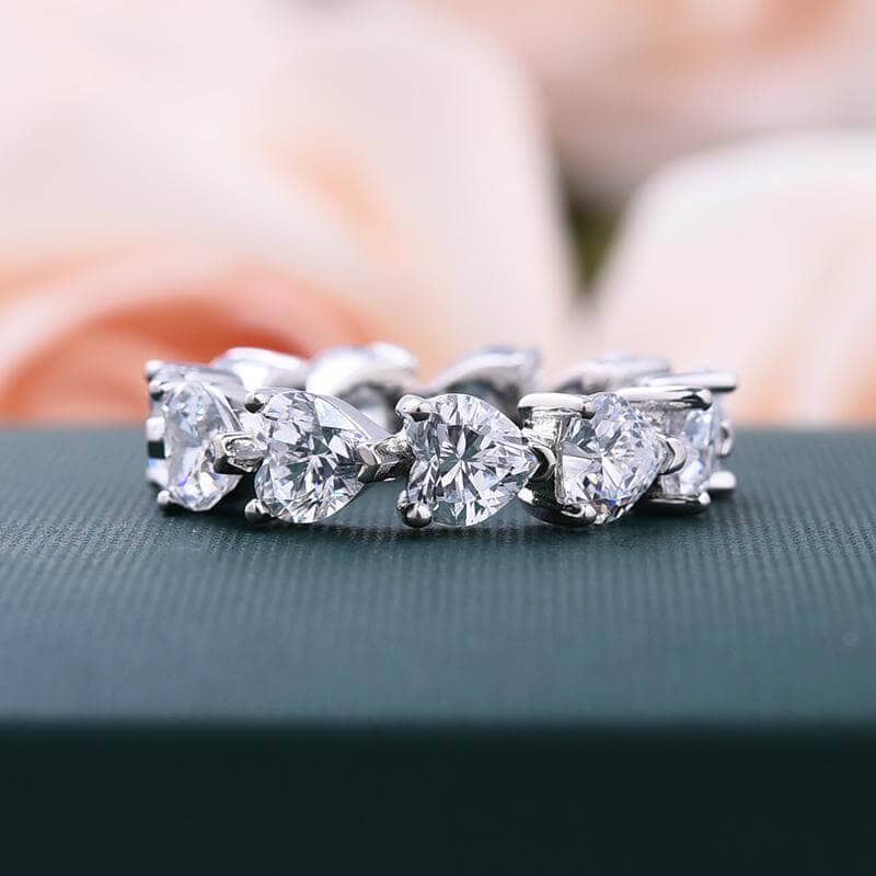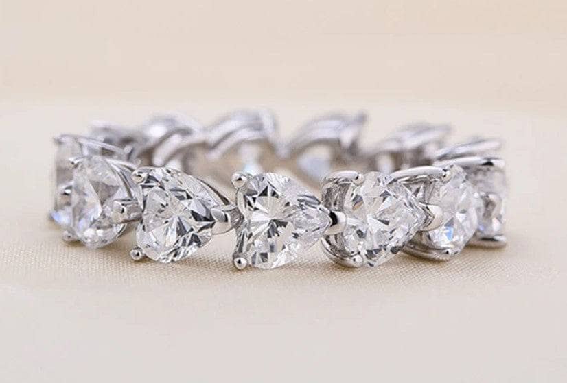 Handcrafted Eternity Heart Cut Wedding Band showcasing premium simulated diamonds that sparkle with natural diamond brilliance. Perfect for engagements, weddings, anniversaries, or special occasions. Our expertly cut stones are built to last with proper care. Enjoy luxury elegance at an affordable price, backed by a one-year warranty and 30-day guarantee.