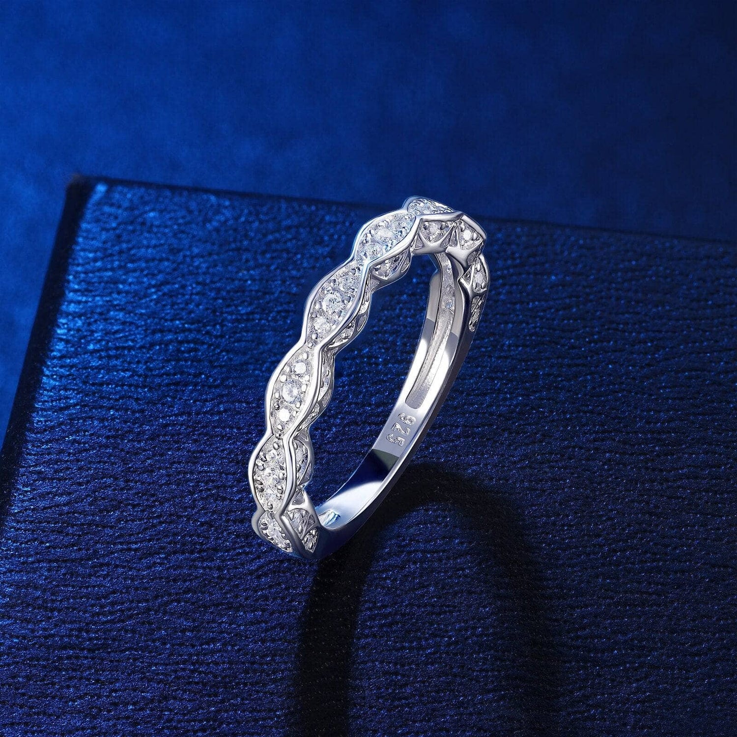 The Double Row Pave Diamond Wedding Band is crafted with 925 Sterling Silver and features exquisite Clear White Diamond Alternatives. The 6mm ring width and 1mm stone size add to the elegant design, while the Rhodium Plating ensures long-lasting beauty. With a Prong Setting, this band is a stunning symbol of love and commitment.