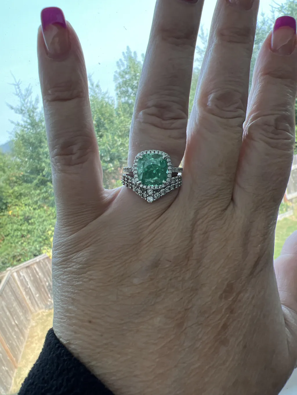 Please note that stone colors may vary slightly depending on the cut, size, stone carat, and type of stones/diamonds being used (e.g., Simulated Diamonds like Sona, Sapphires, Diamond Alternative, and Created Diamonds have more saturated hues compared to moissanite, lab diamonds, natural diamonds, and other gemstones). Please contact our team for more info.