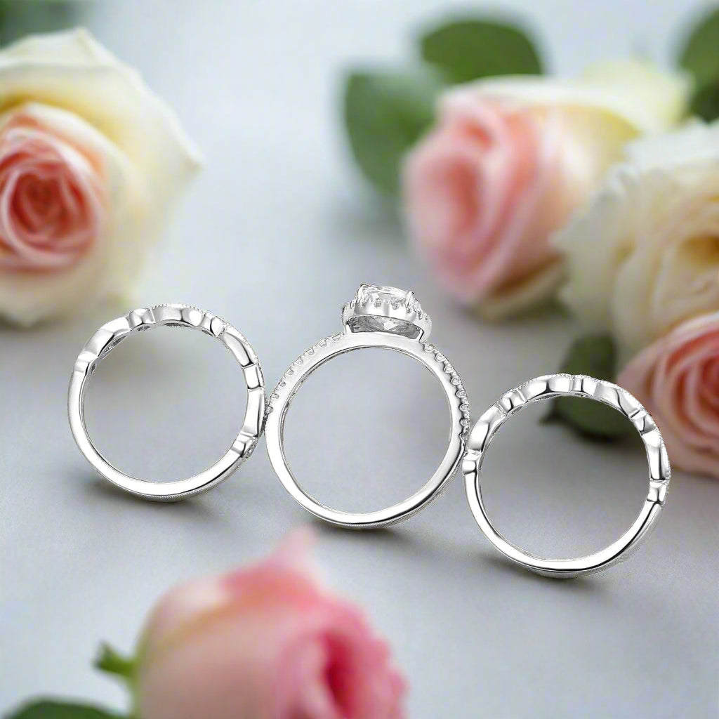 Please note that stone colors may vary slightly depending on the cut, size, stone carat, and type of stones/diamonds being used (e.g., Simulated Diamonds like Sona, Sapphires, Diamond Alternative, and Created Diamonds have more saturated hues compared to moissanite, lab diamonds, natural diamonds, and other gemstones). Please contact our team for more info.