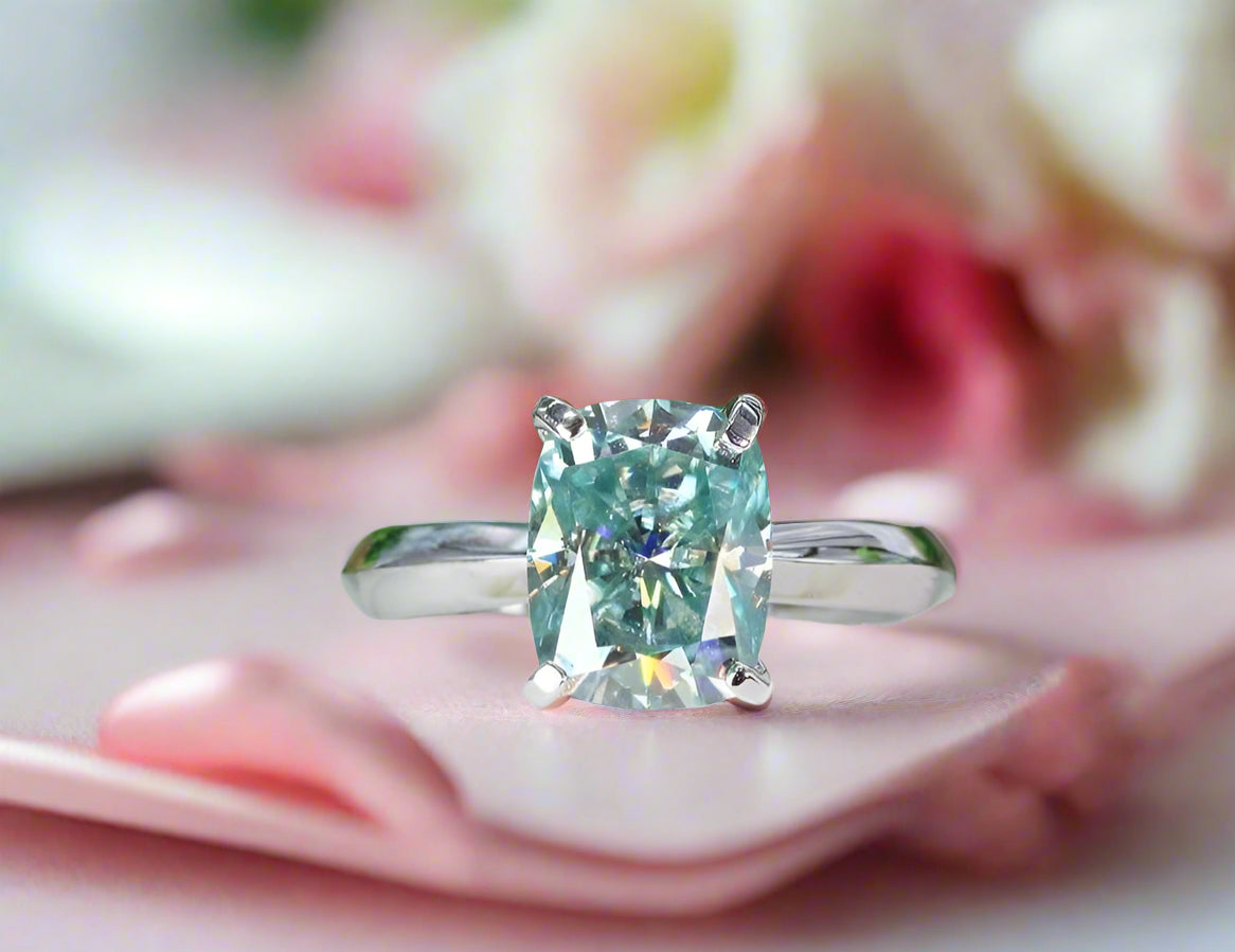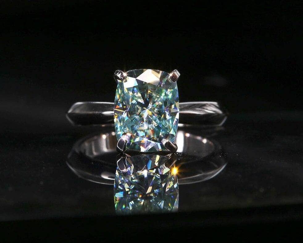 Rare Blue Green Cushion Cut Diamond Ring
