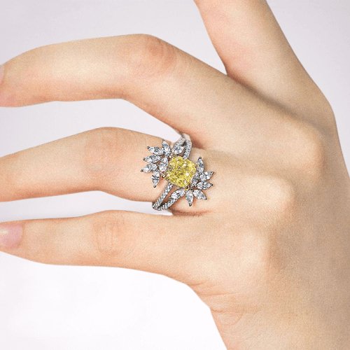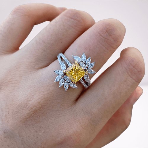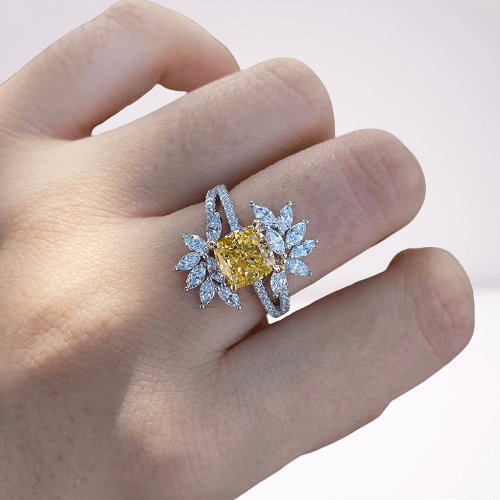 Flower Design Radiant Cut Yellow Sapphire Engagement Ring
