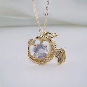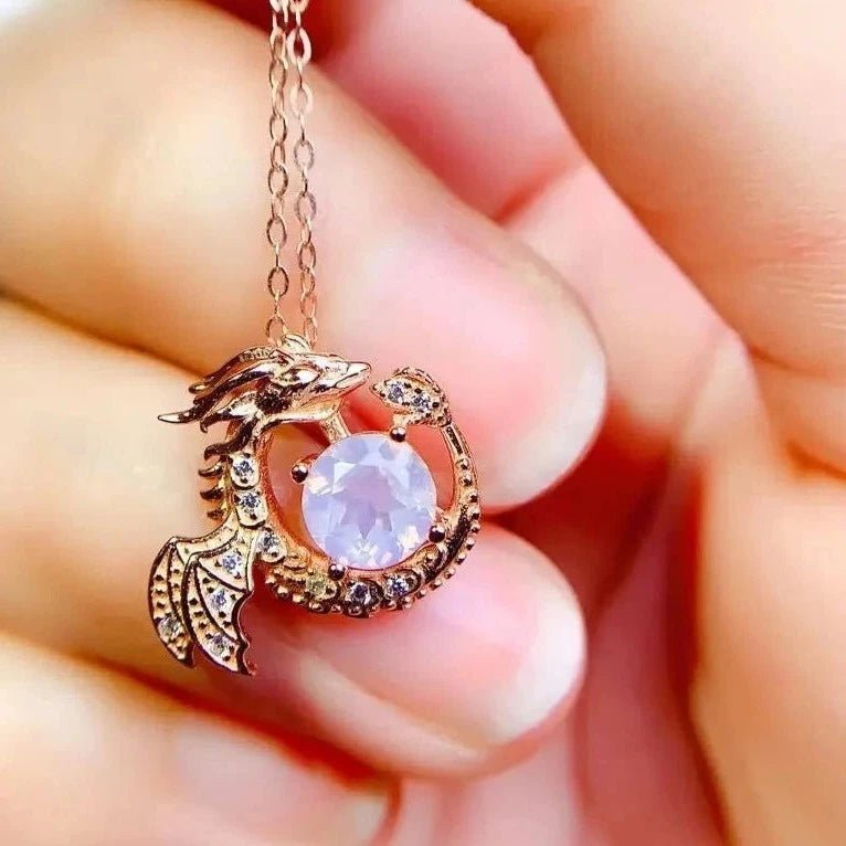 Unleash your inner fire with our exquisite Flying Dragon Pendant Necklace with Natural Lavender Quartz. Crafted with precision and high quality materials such as 925 silver dipped 5 times in 18k gold, this gorgeous piece is not only affordable, but also sure to turn heads wherever you go. Embrace the mystical charm of the dragon with this captivating accessory.