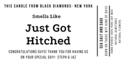 Choose your design, then add your custom message or name in the 'Order Notes' box on the cart page or email us. We'll select a unique candle scent for you. Keep messages short and sweet for clear printing over a holographic paper.