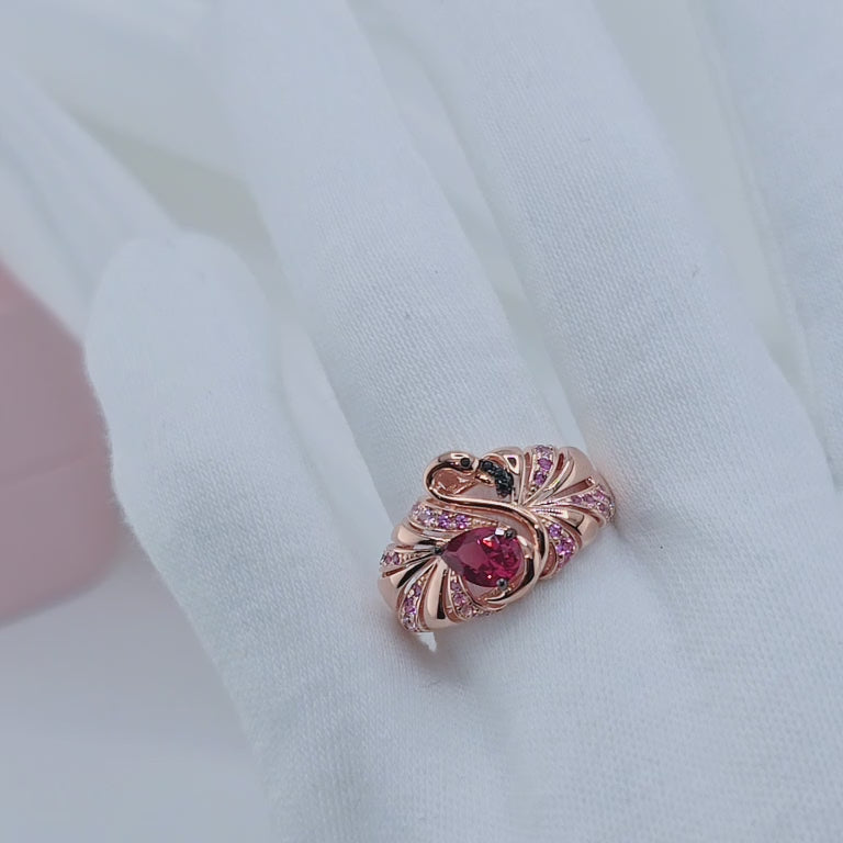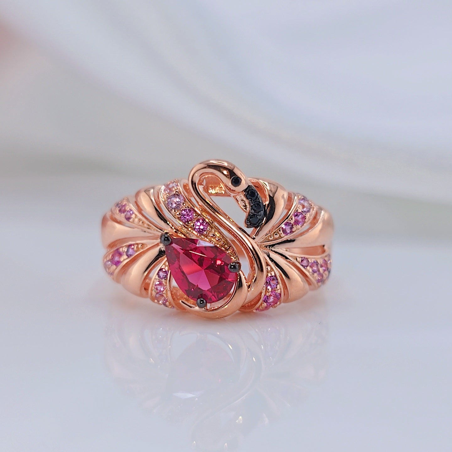 This one-of-a-kind design features meticulous handcrafting, incorporating a beautiful flamingo and pear cut gemstone to create an eye-catching accent. Made from only the highest quality materials, this ring ensures uncompromising excellence, sustainability and one-of-a-kind appeal.