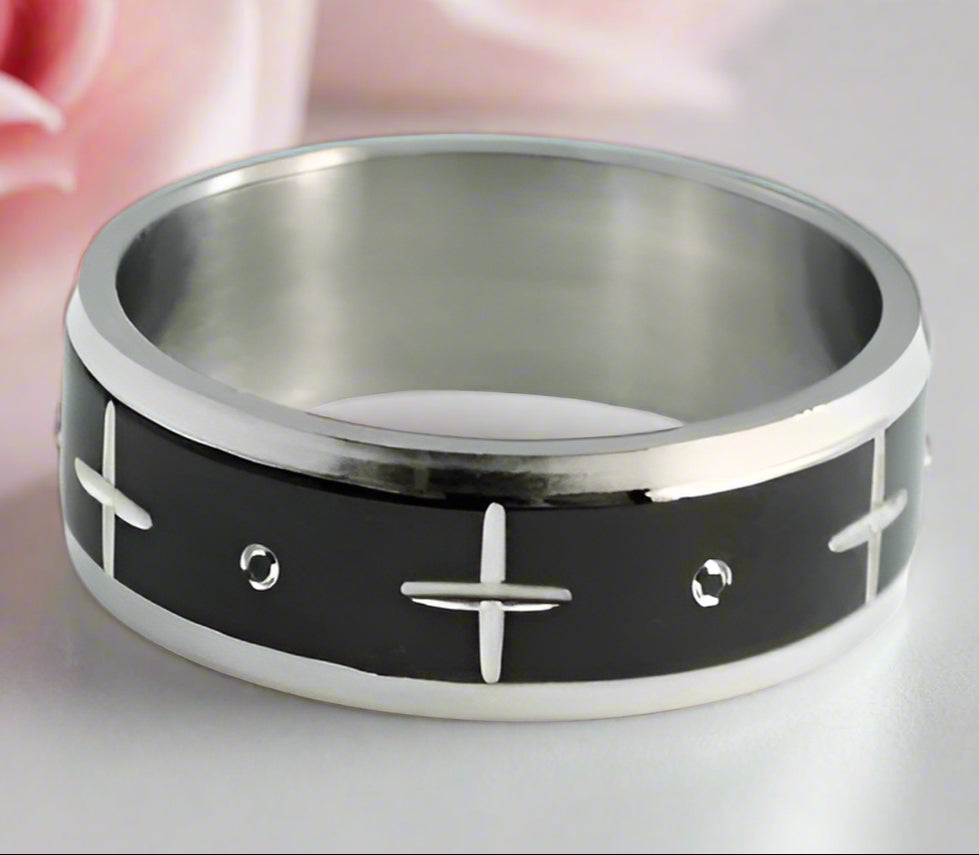 This Gothic Two Tone Cross Men's Ring Band is expertly handcrafted for enduring quality. Made with premium, ethically sourced materials, it combines timeless design with lasting craftsmanship.