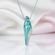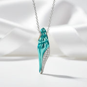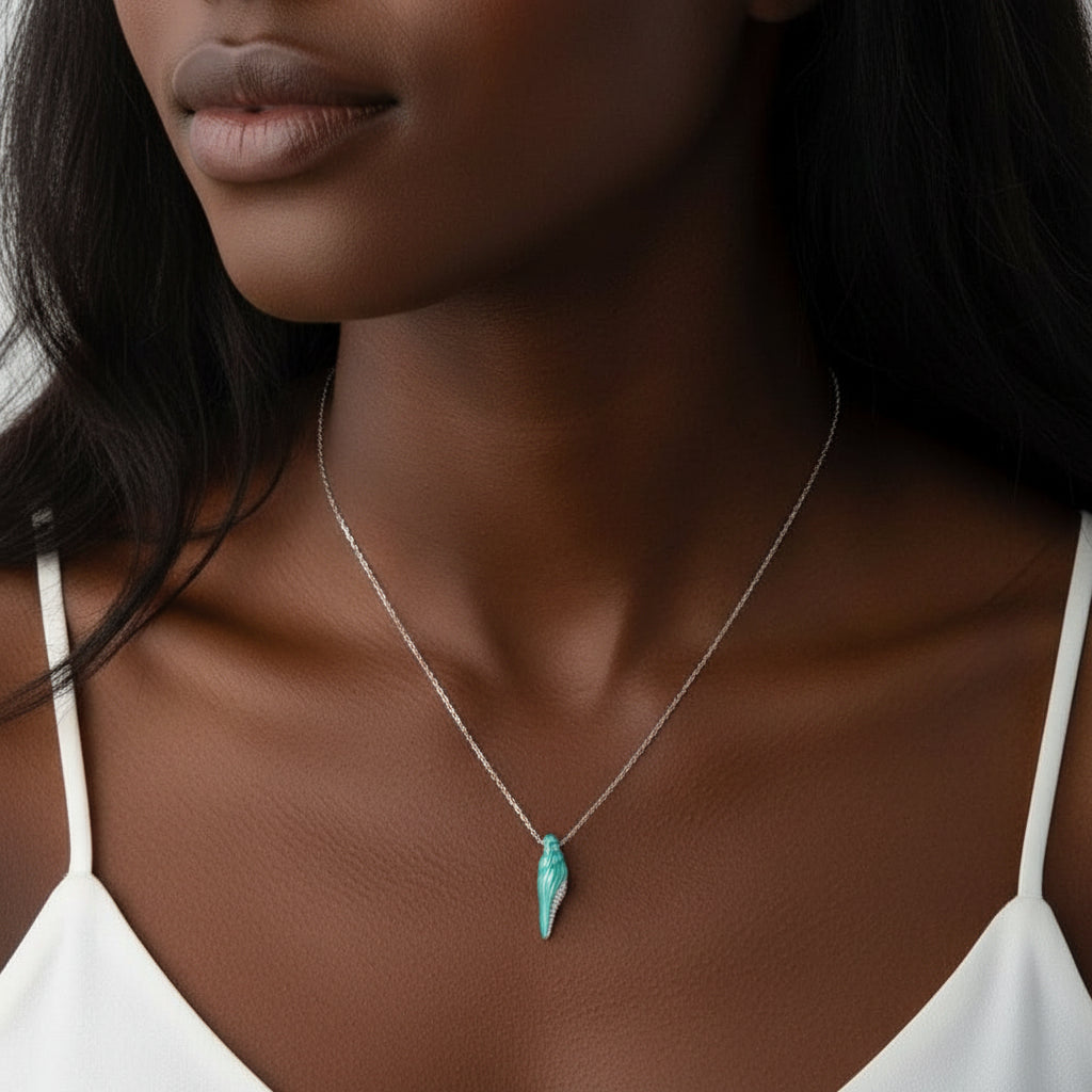 Add a pop of color to your outfit with our Green Enamel Conch Shell Pendant Necklace. This striking piece is adorned with round EVN stones that shimmer in the light. Made with high quality 925 silver dipped 5x in 18k white gold, this necklace is not only gorgeous but also budget-friendly. Elevate your style with this exquisite accessory.
