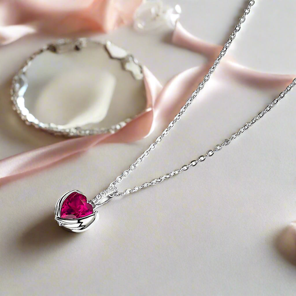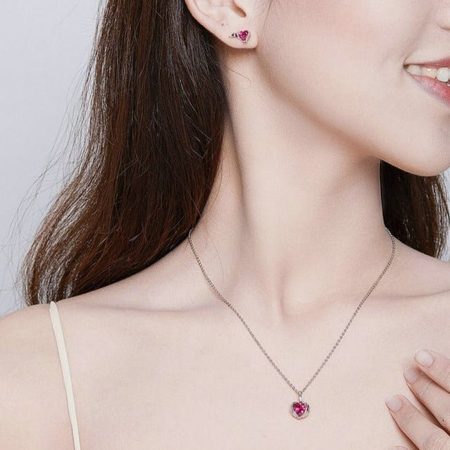 Guardian Wings Pink Heart Diamond Jewelry Set