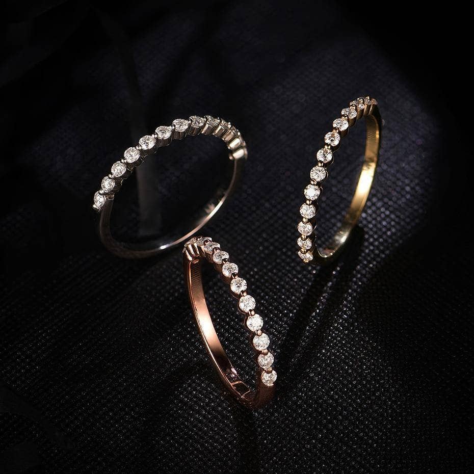 This Half Eternity Diamond Bubble Ring Band is expertly made to endure forever. Crafted from high-quality, ethically sourced materials, it’s an elegant choice ideal for stacking or as a wedding band.