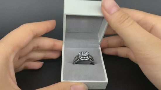 Double Halo Cushion Cut Diamond Black Engagement Ring Set
