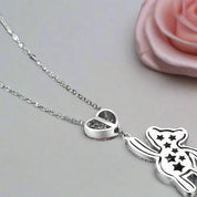 Fall in love with our Heart and Cute Bear Pendant Necklace featuring a captivating pink round Diamond Alternative . Crafted with utmost care, this necklace is made from premium 925 silver dipped 5x in 18K white gold, ensuring long-lasting quality. Its charming bear pendant and heart design make it a perfect accessory for any occasion, adding a touch of elegance to your outfit. With its affordable price, you can indulge in this beautiful piece without breaking the bank.