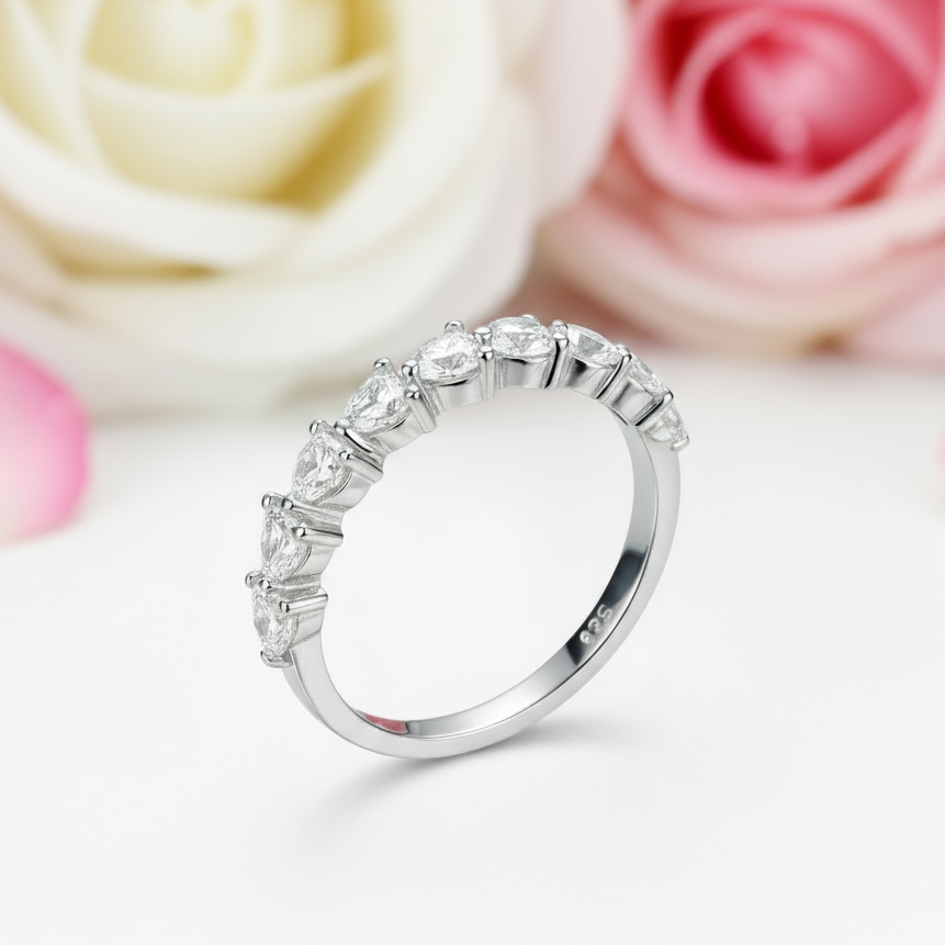 This Heart Shaped Eternity Promise Ring is crafted from premium materials and meticulously handmade to deliver outstanding brilliance, radiating the captivating sparkle of a genuine diamond.