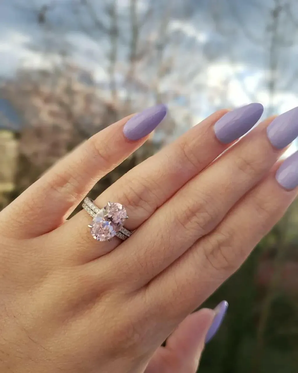 Lovely Oval Cut Pink Sapphire Wedding Ring Set featuring hand-embedded stones. This exquisite piece works beautifully as an engagement, wedding, or anniversary ring. Crafted with precision-cut simulated diamonds that rival natural stones in sparkle and brilliance, yet at a fraction of the cost. Durable and comfortable for everyday wear. Backed by a one-year warranty and 30-day guarantee.