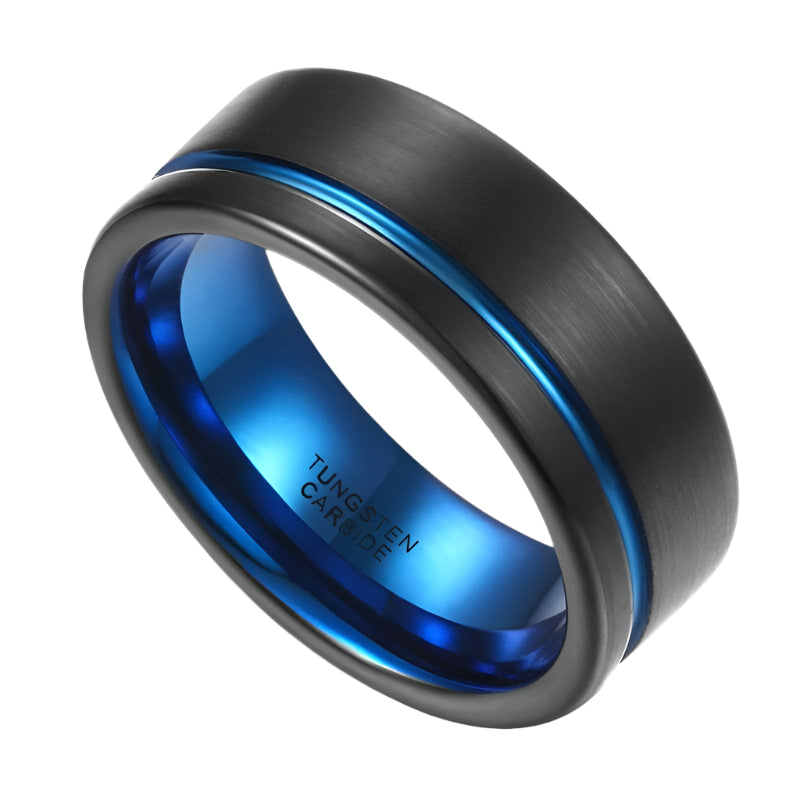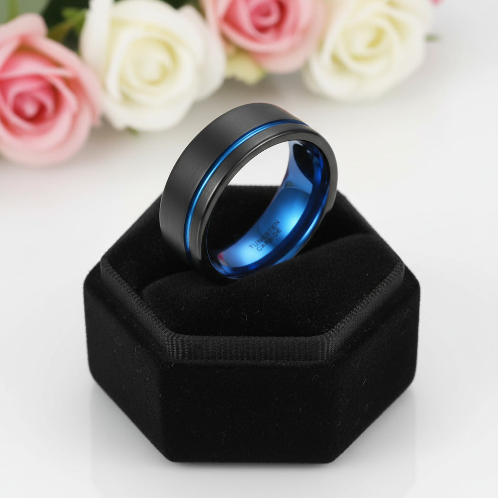 Men's 8mm Tungsten Carbide Wedding Band with Blue Line