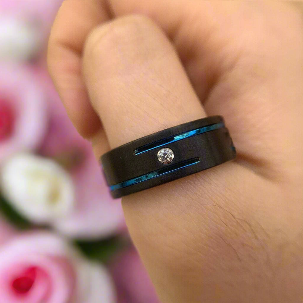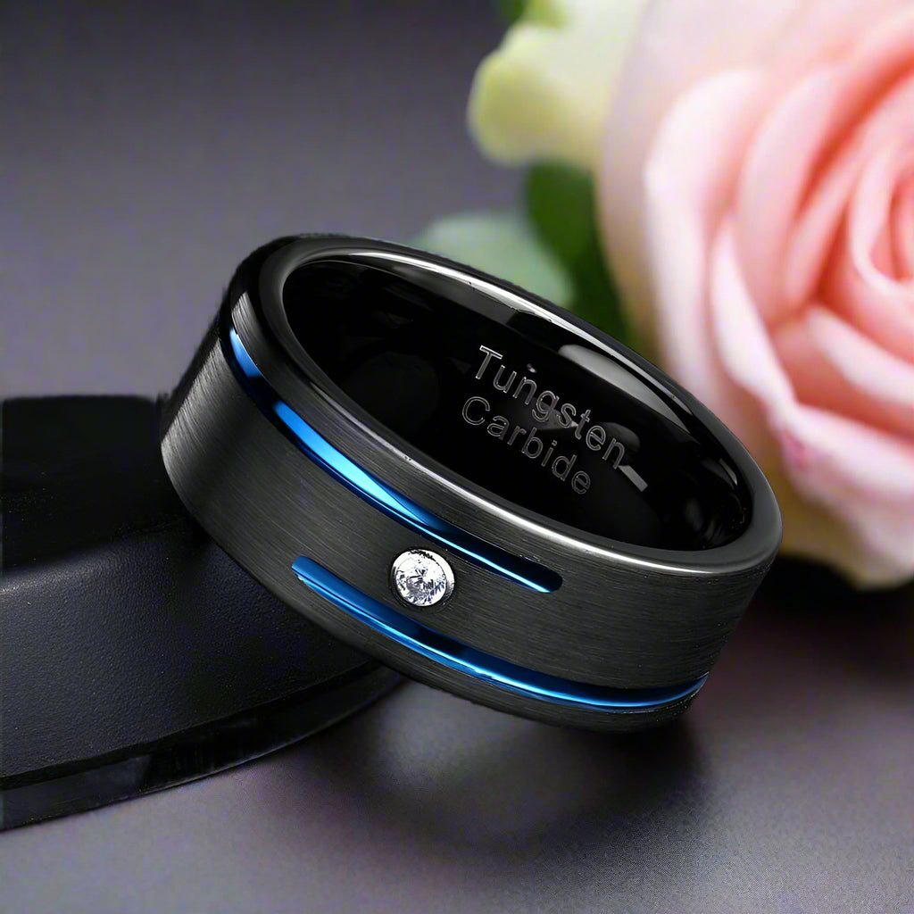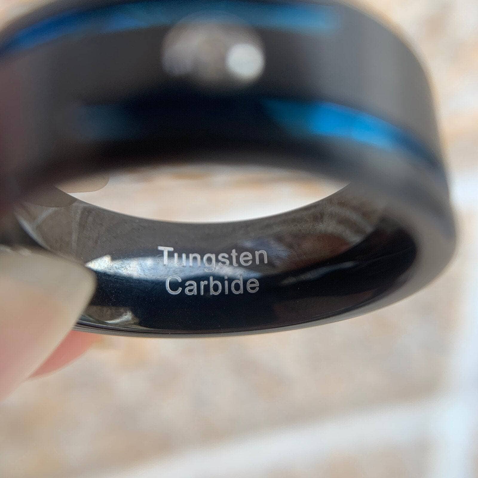 Crafted with precision, the Men's Charm 8mm Black Tungsten Carbide Wedding Band shines with a stunning brilliance that rivals a diamond. Designed to celebrate your bond, this ring is a meaningful symbol for you, your partner, and the love you share.