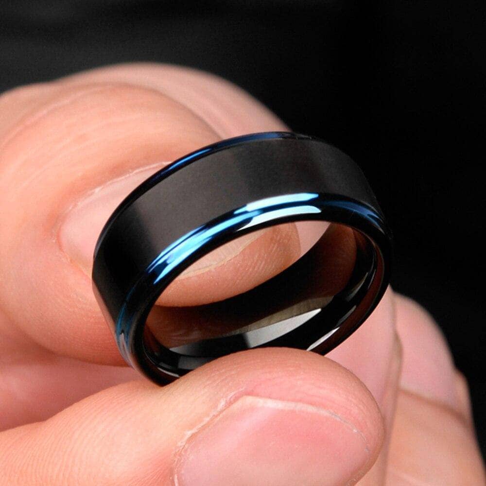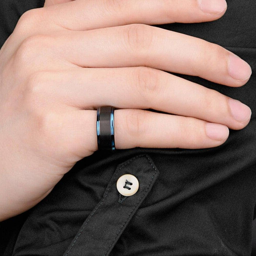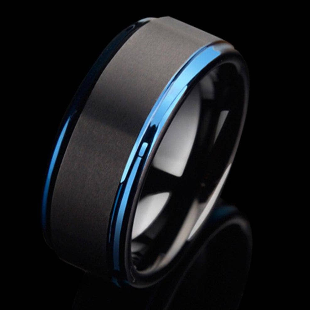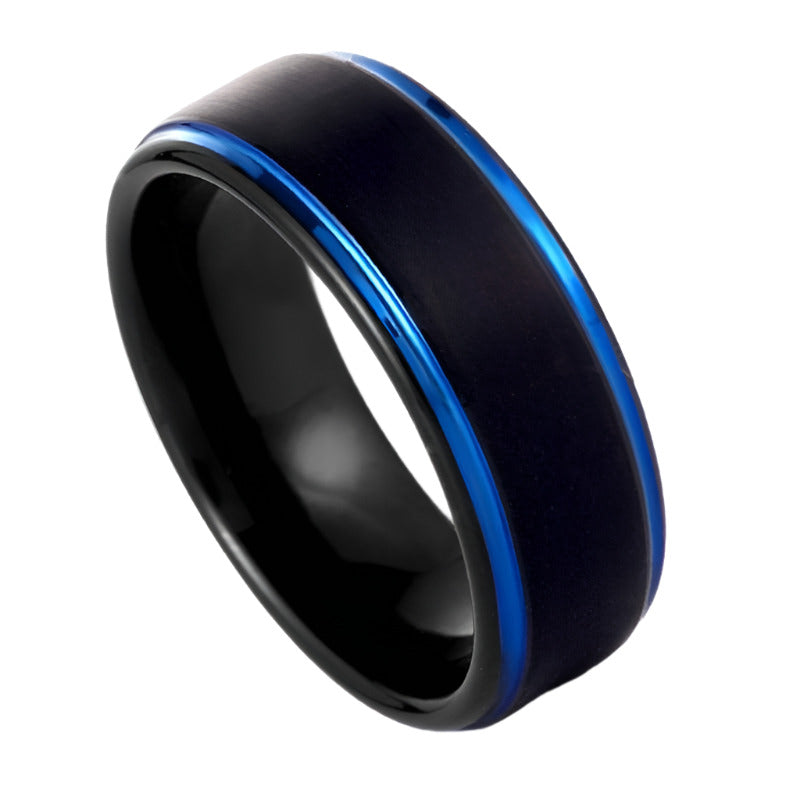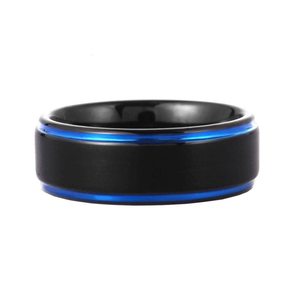 Men's Tungsten 8mm Black And Blue Line Wedding Band