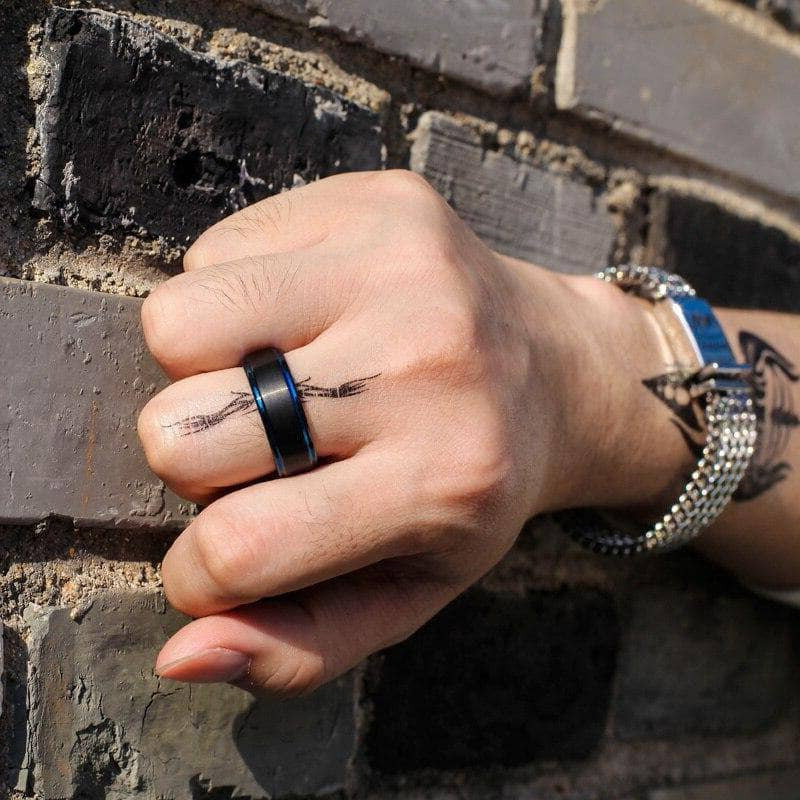 This Men's Tungsten 8mm Black and Blue Line Wedding Band is expertly handcrafted to deliver outstanding brilliance, shining with the radiance of a diamond. Designed to symbolize your commitment, it’s the perfect ring for you, your beloved, and the one who cherishes you.
