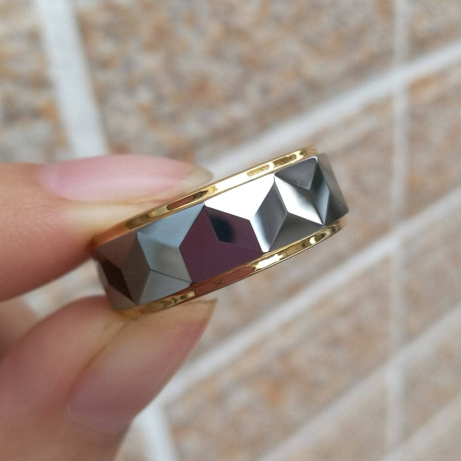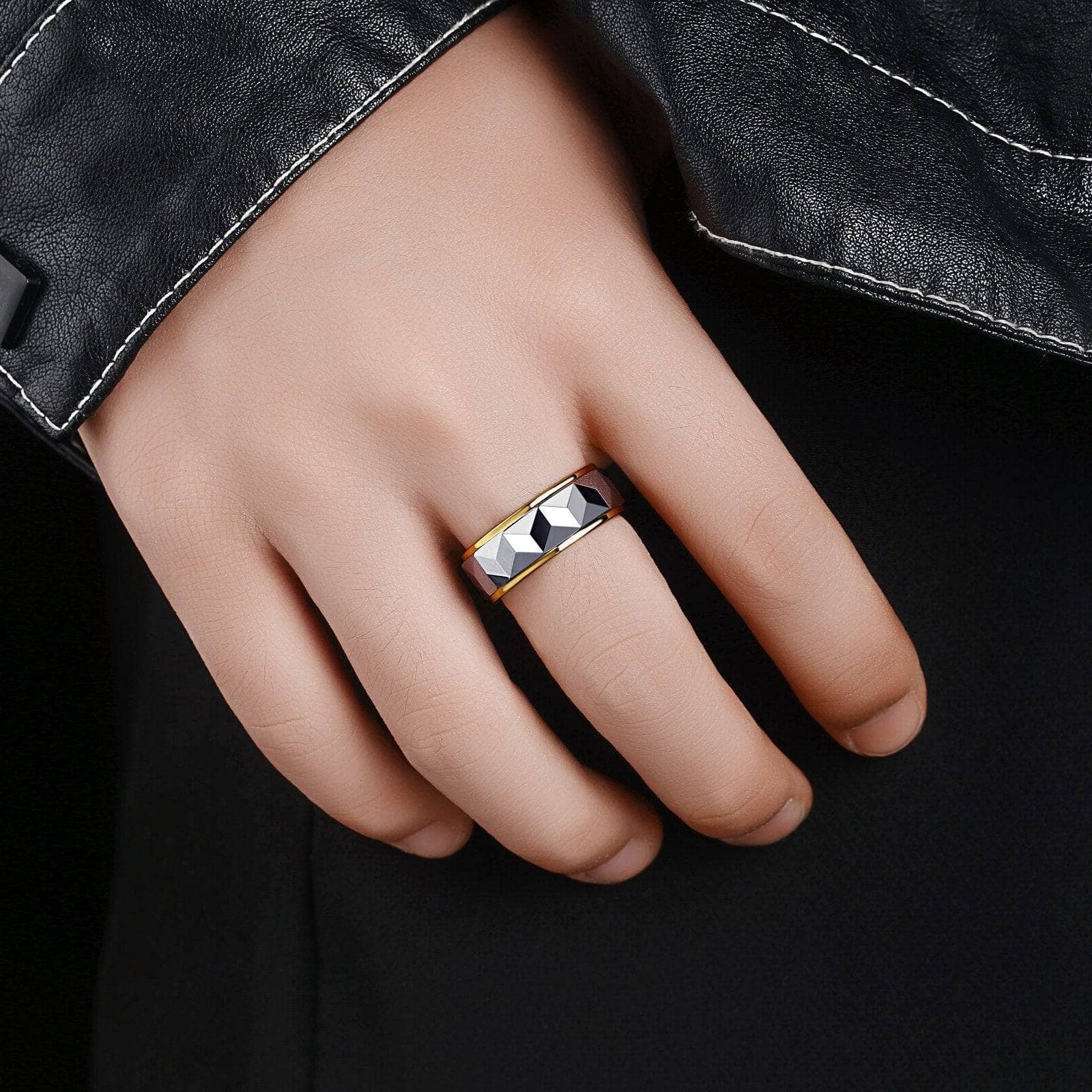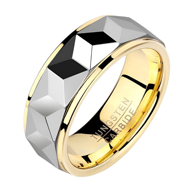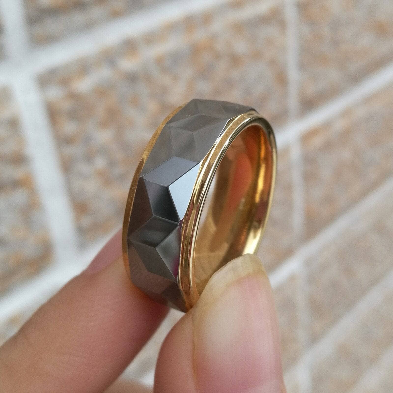This Men's Wedding Band 8mm Tungsten Carbide Gold and Gray is expertly handcrafted to showcase an exceptional look. This ring is designed to celebrate you, your loved ones, and the deep love that connects you all.