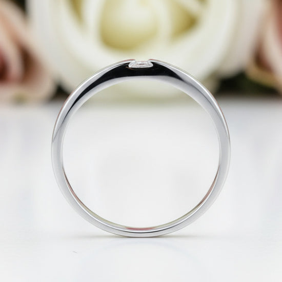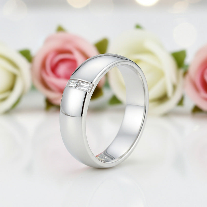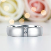 Indulge in luxury with our Men's Wedding Band Ring. Made of 925 Sterling Silver and rhodium plated, this ring features a 6mm width and a stunning emerald cut clear white diamond measuring 3mm*1.7mm. The channel setting adds an exclusive touch while the high polished finish exudes elegance and sophistication.