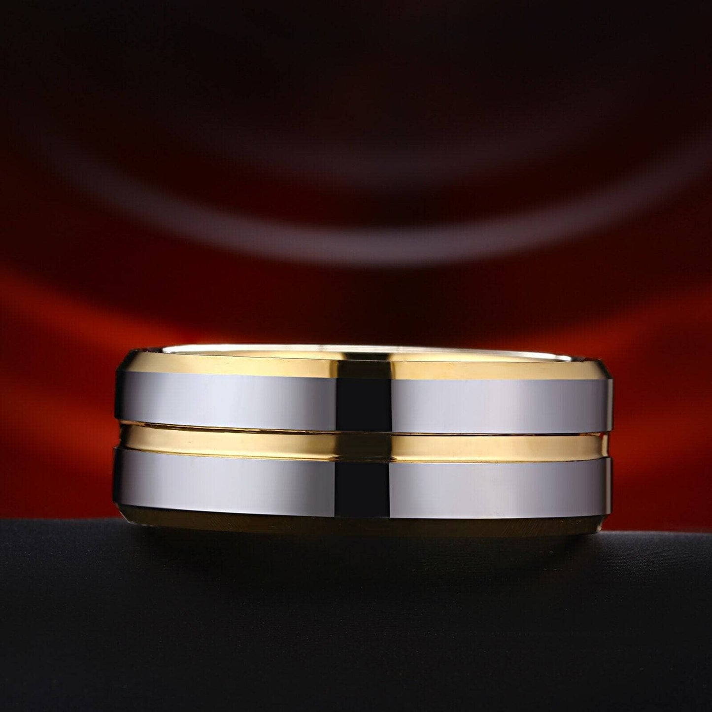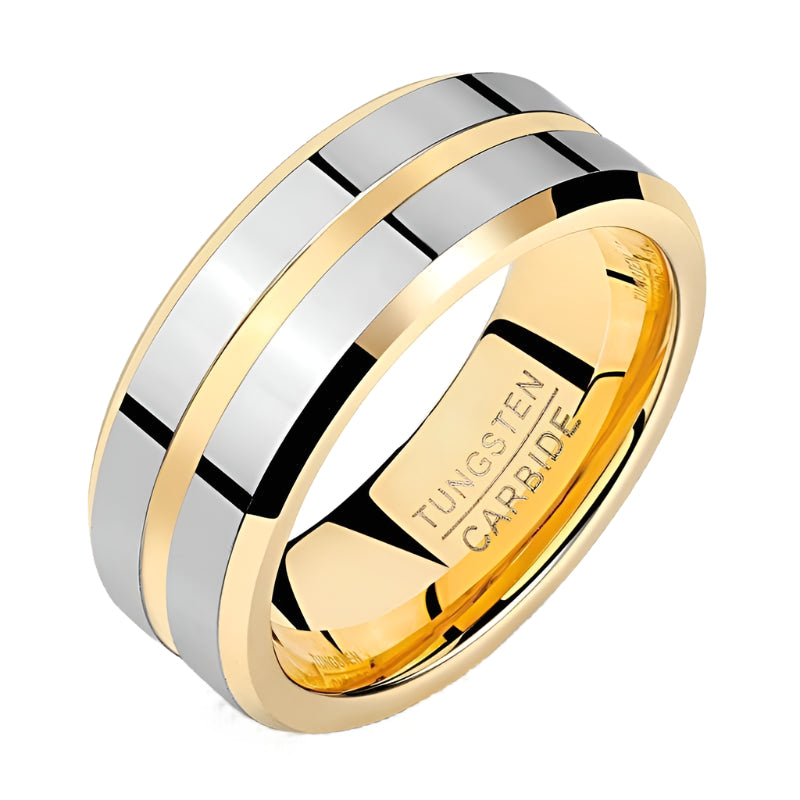 Men's Wedding Band Tungsten Carbide 8mm Golden Gray