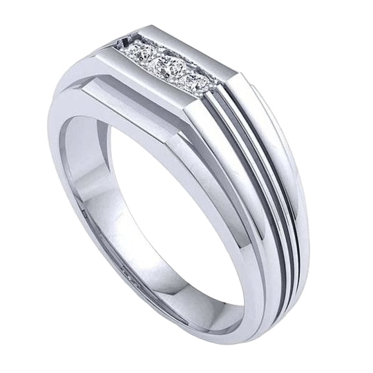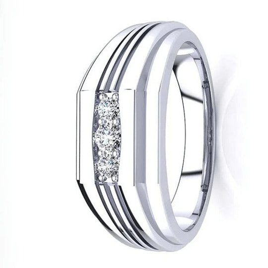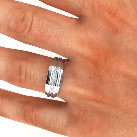 Experience true elegance and sophistication with our Men's Wedding Band, featuring a dazzling 0.3 carat created sapphire set in sterling silver with your choice of white or yellow gold plating. Make a statement on your special day with this exquisite piece.