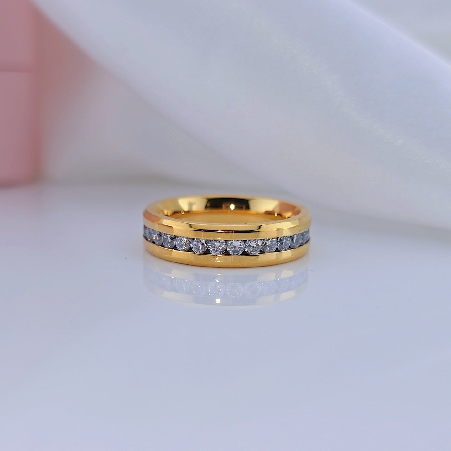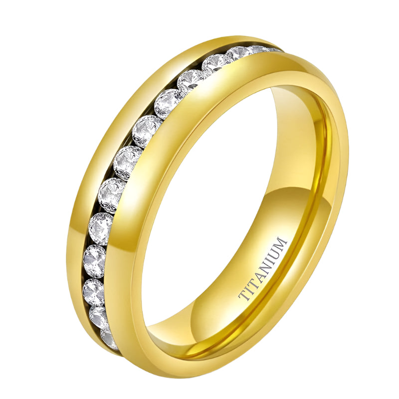 Crafted from premium, ethically sourced materials, this Men's Yellow Gold Titanium Wedding Band with Diamond is designed to endure a lifetime. Elevate your commitment with a distinctive and affordable ring that stands apart from the ordinary.