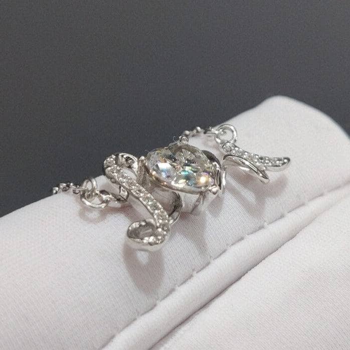 Fall in love with our exquisite Certified Moissanite Love Shaped Pendant Necklace from Black Diamonds New York. This gorgeous necklace features a heart cut diamond on a 925 silver dipped five times in 18k white gold, combining style and affordability in one stunning piece. Elevate your outfit with this high-quality pendant that will leave you feeling fabulous.