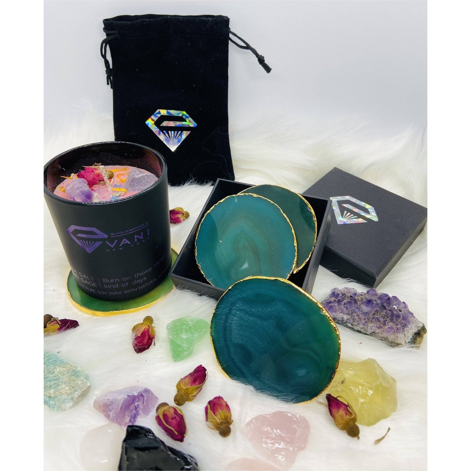 Natural Mtorolite Luxury Quartz Agate Round Coasters - Black Diamonds New York