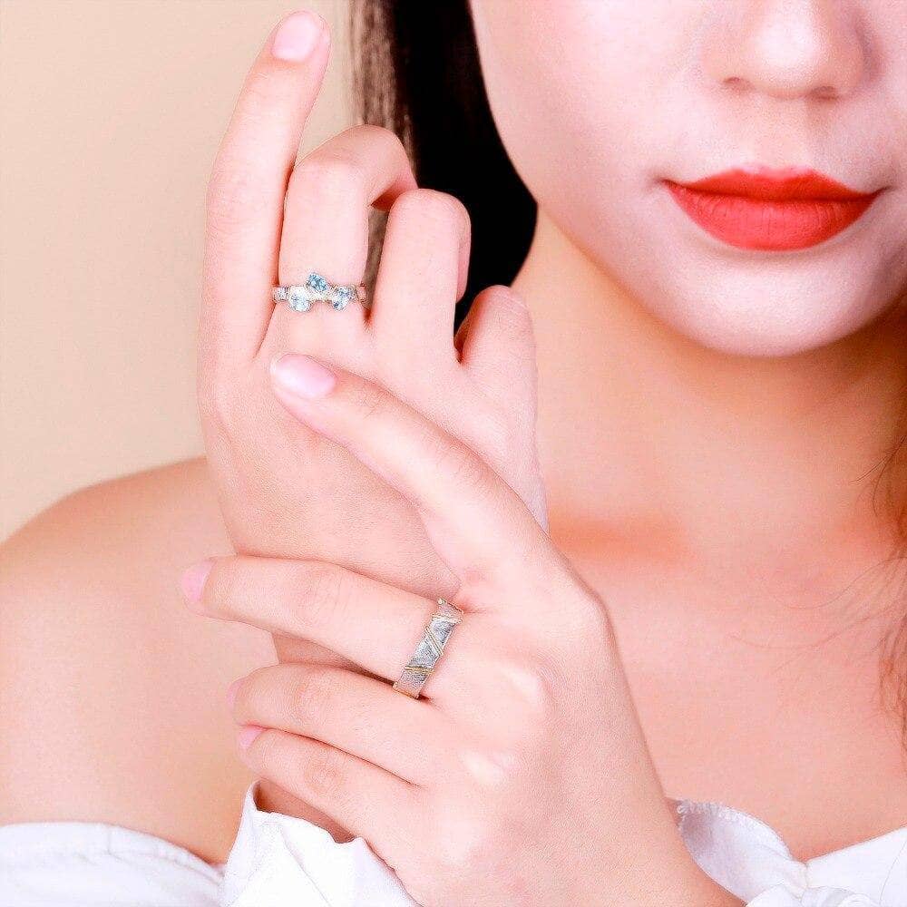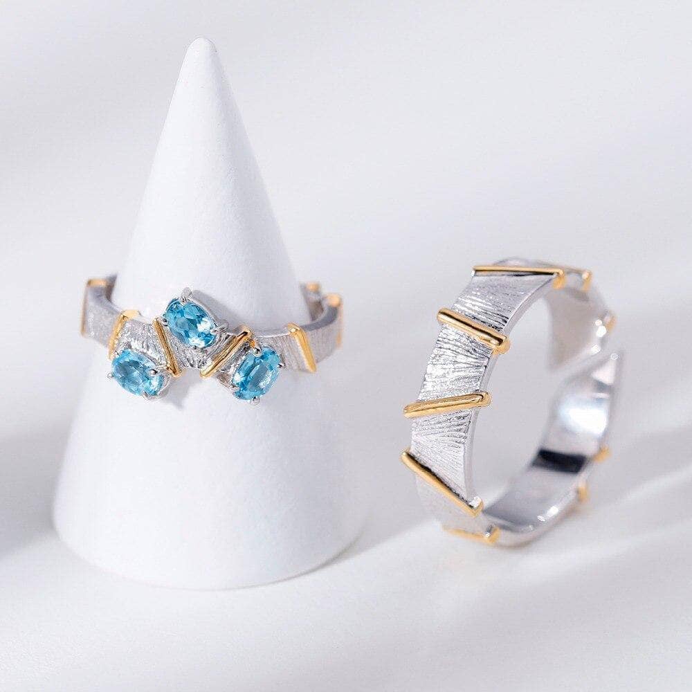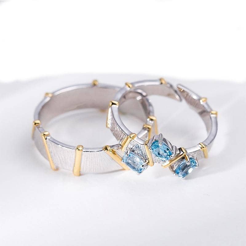 Natural Swiss Blue Topaz Cross Adjustable Couple Rings