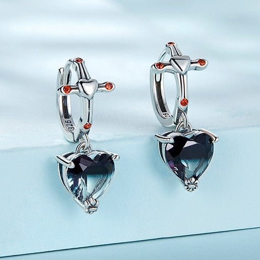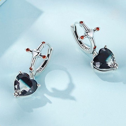 Neo-Gothic Heart & Cross Hoop Earrings