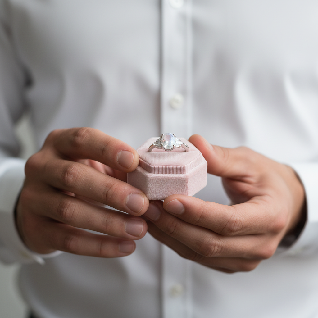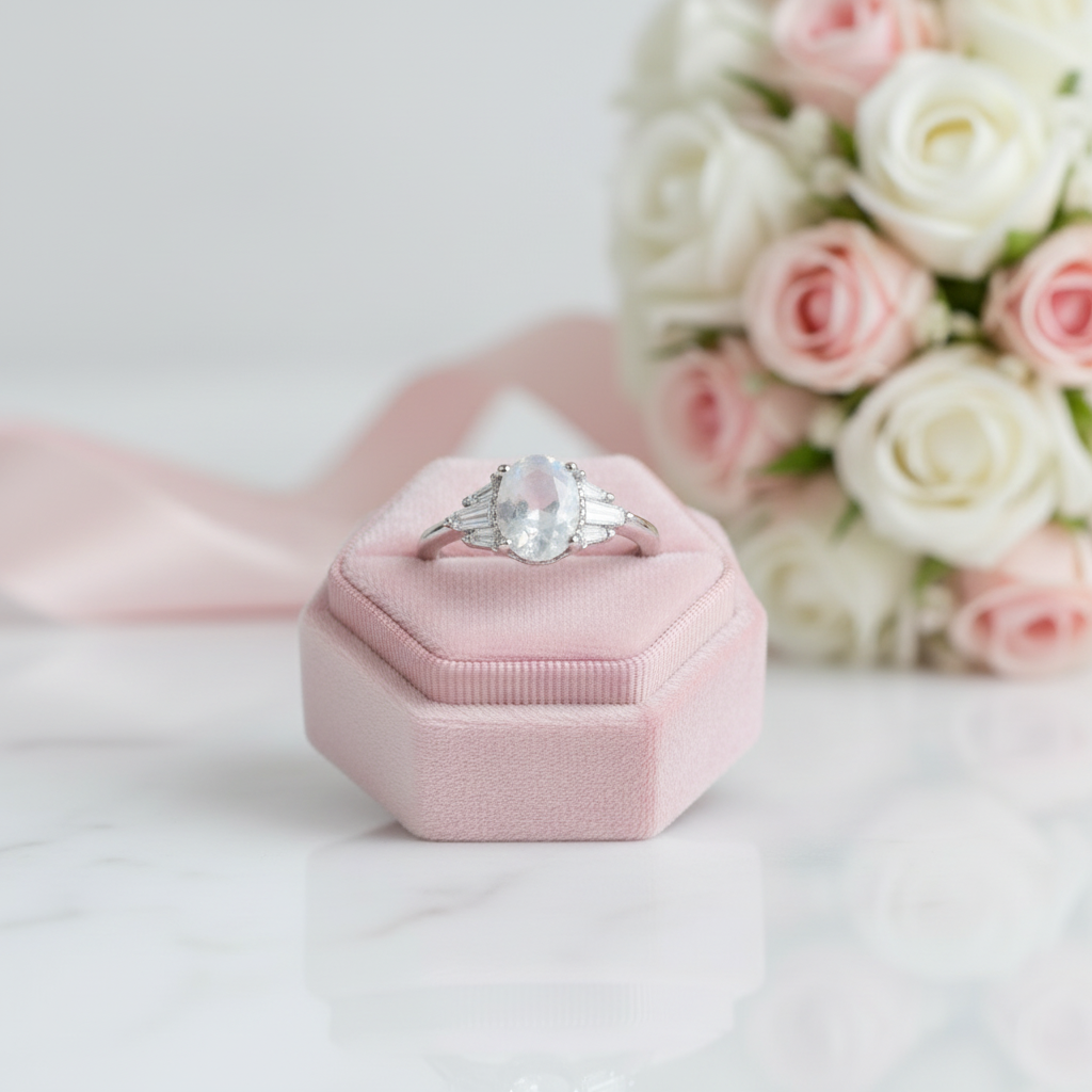 Oval Cut Moonstone Engagement Ring