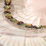 Oval-cut Natural Multi Gemstone Flower Halo Bracelet