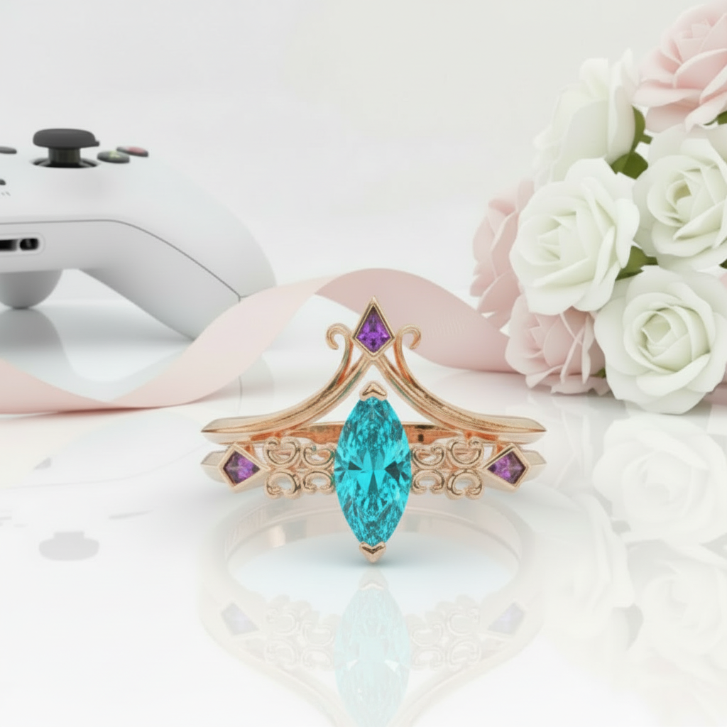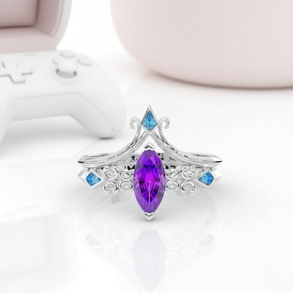 Embrace your vow of love and honor with the Paladin’s Ring Set, handcrafted for those who embody devotion, loyalty, and justice. Each gemstone and detail symbolizes the sacred quest of a true warrior of light. Perfect for gamers, fantasy lovers, and alternative couples, this video game inspired ring channels strength, purity, and eternal love.