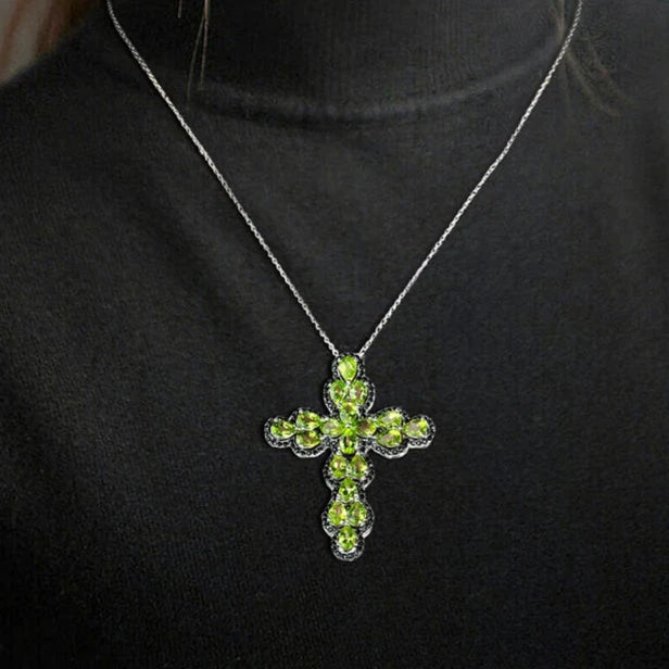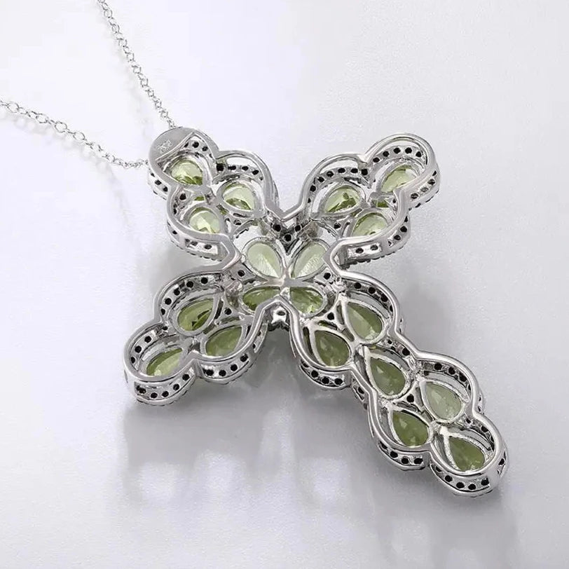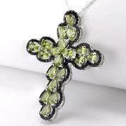 Pear-cut Peridot with Black Spinel Cross Pendant Necklace