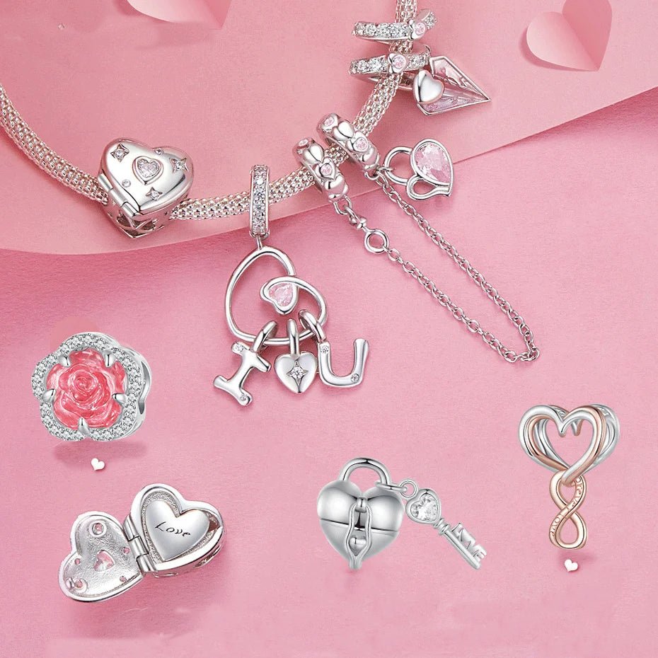 Pink Heart Charms & Pendant