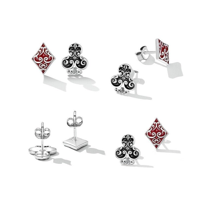 Punk Asymmetric Poker Card Symbols Stud Earrings