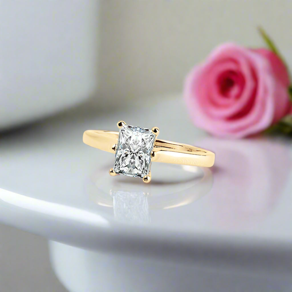 Radiant Cut Diamond Solitaire Engagement Ring in 10k Yellow Gold