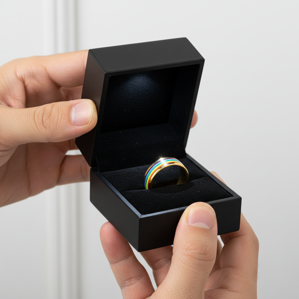 Discover the stunning Rainbow 8mm Tungsten Carbide Men's Ring with a surface width of 8mm and thickness of 2.3mm, available in a variety of striking plating options such as Yellow Gold, Black, and Gray. Upgrade your style game with this durable and chic ring today!
