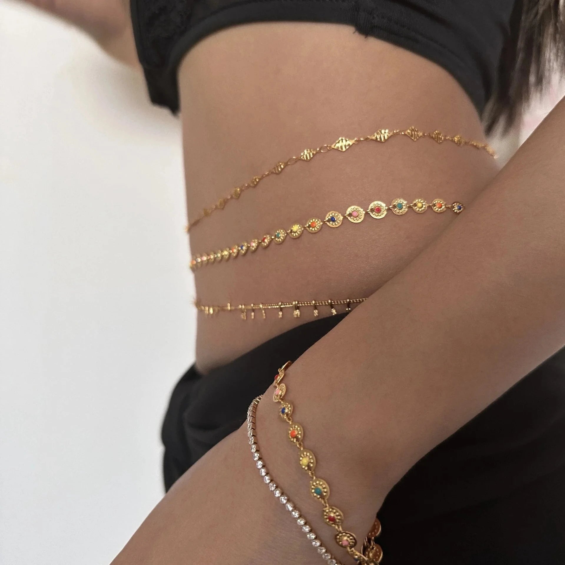 Elevate your style game with the Rhinestone Women's Waist Chain by Black Diamonds New York! This waist chain is a true showstopper, featuring a captivating design adorned with rhinestones to add that extra touch of glam. Handcrafted with utmost precision, our high-quality chain is dipped 5 times in 18K yellow gold, ensuring durability and a breathtaking shine. Not only does this gorgeous accessory seamlessly complement any attire, but its affordability allows you to indulge in luxury without breaking the bank. Get ready to make heads turn as you become the center of attention with this exquisite waist chain.