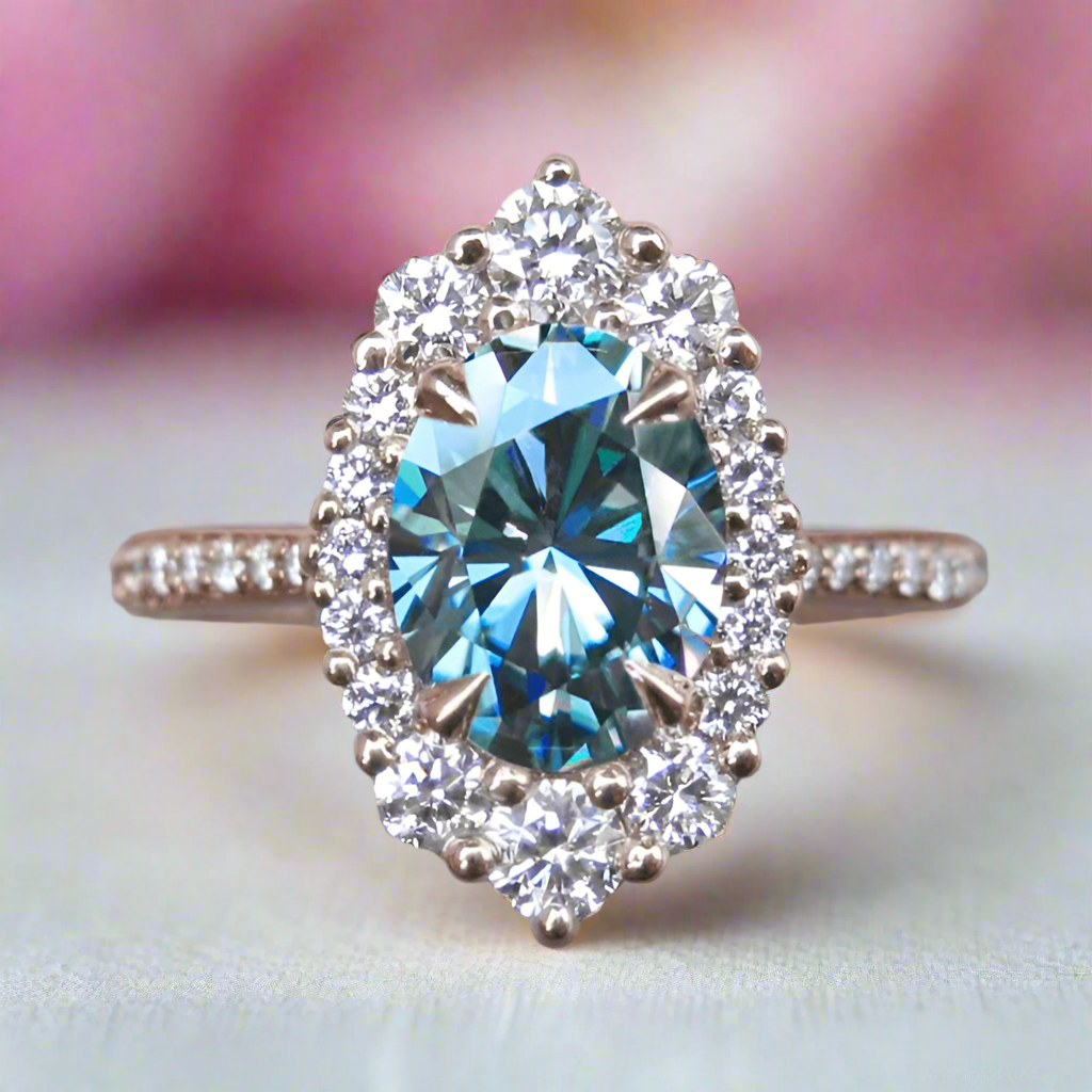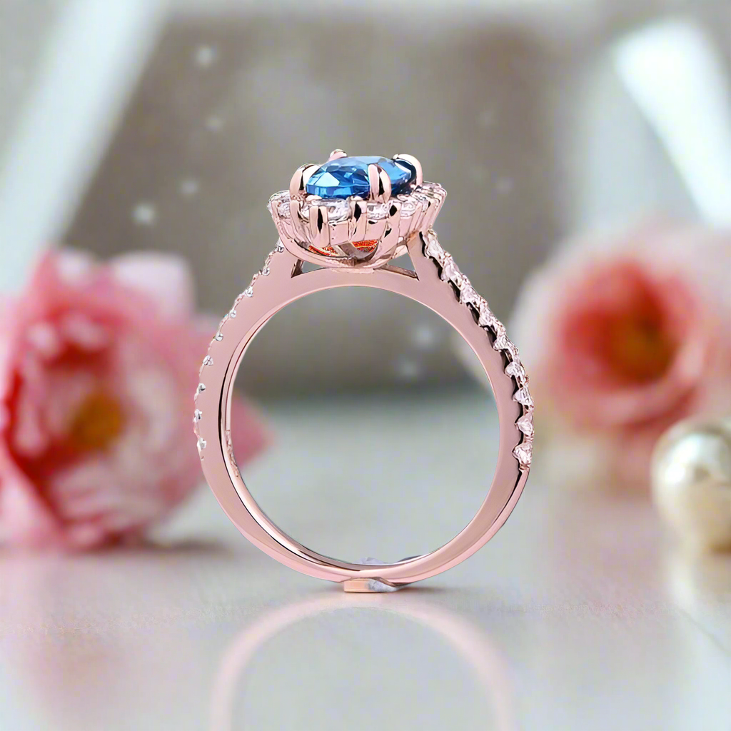 Rose Gold Aquamarine Oval Cut Engagement Ring