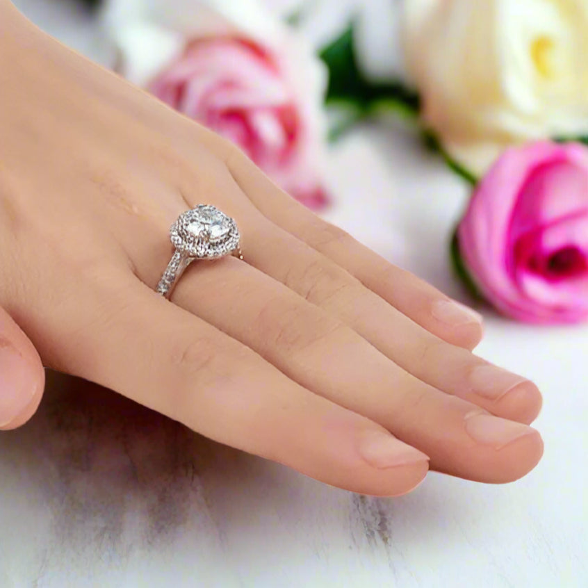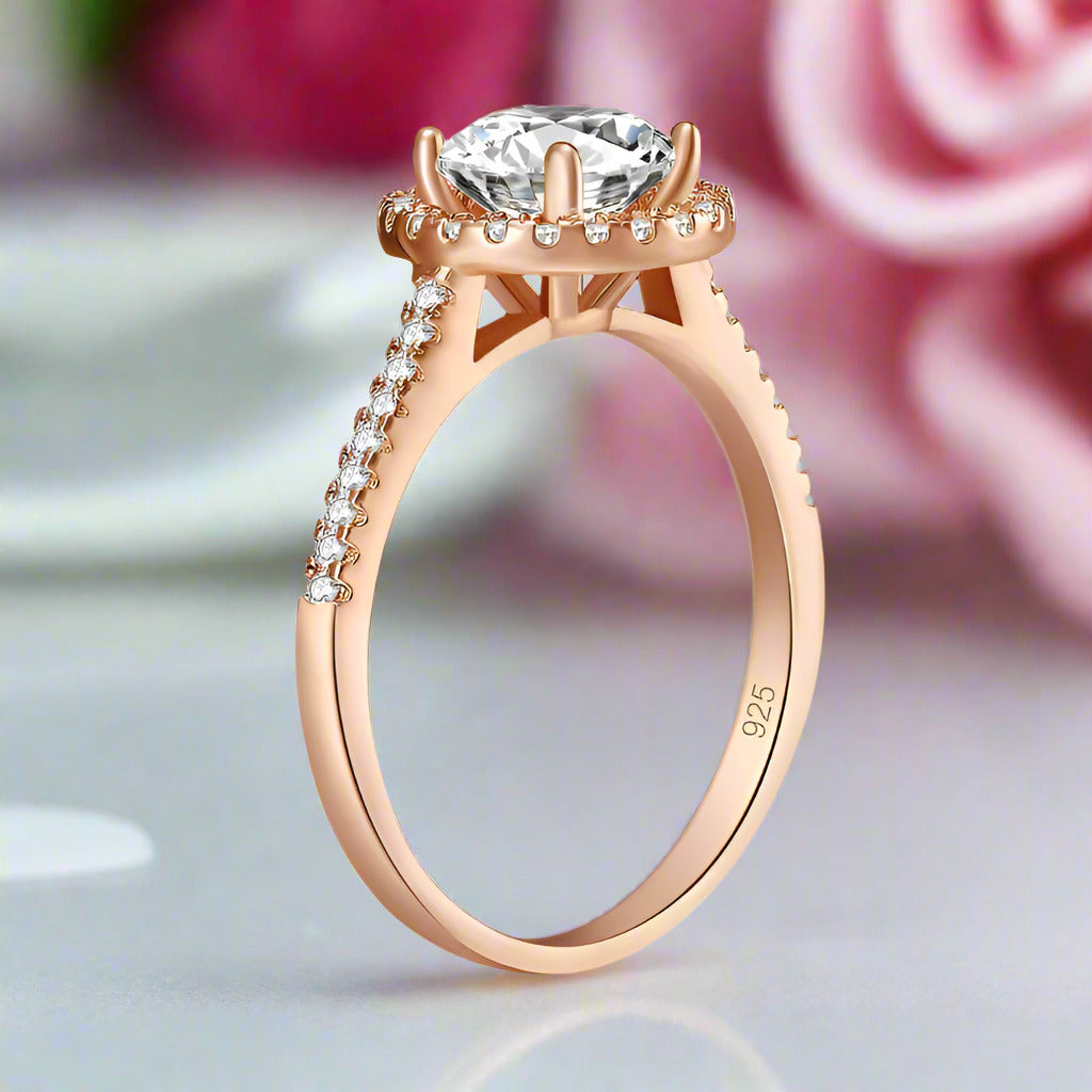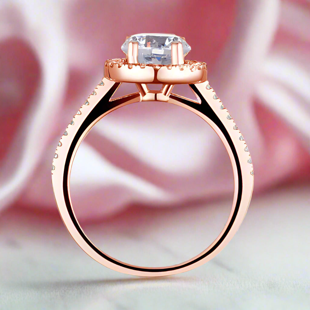 1.2CT Round Diamond Halo Rose Gold Engagement Ring