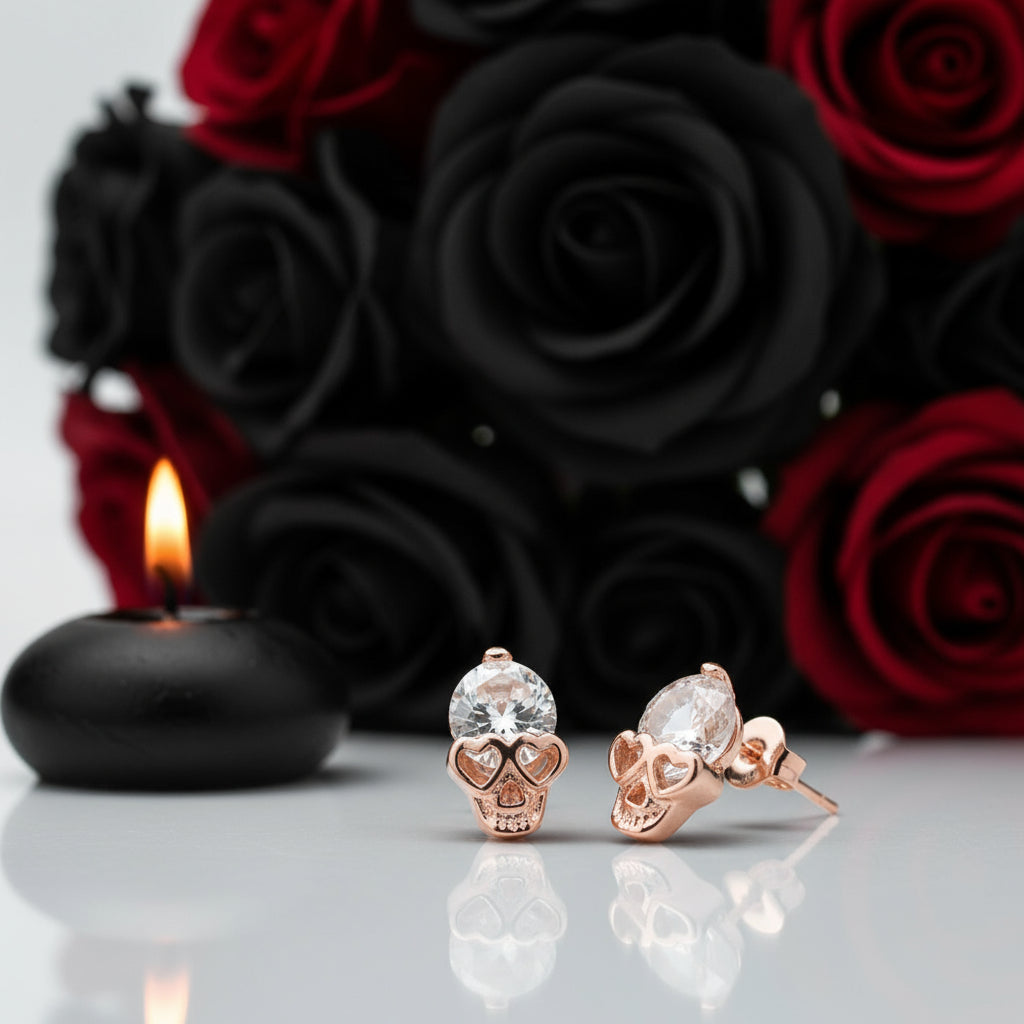 Unleash your inner rebel with these Rose Gold Skull Certified Moissanite Earrings from Black Diamonds New York. The attention-grabbing skull design paired with the stunning round cut diamonds makes for a truly unique and mesmerizing accessory. With a touch of rose gold elegance, these earrings exude both style and sophistication. Don't miss out on the chance to own these affordable and tantalizing pieces that are sure to turn heads wherever you go.