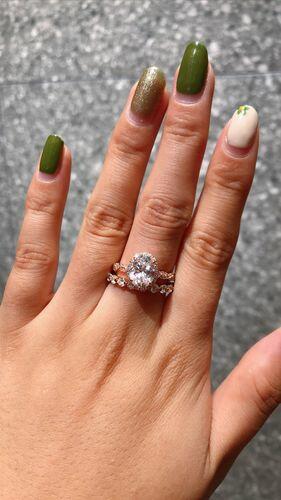 Please note that stone colors may vary slightly depending on the cut, size, stone carat, and type of stones/diamonds being used (e.g., Simulated Diamonds like Sona, Sapphires, Diamond Alternative, and Created Diamonds have more saturated hues compared to moissanite, lab diamonds, natural diamonds, and other gemstones). Please contact our team for more info.