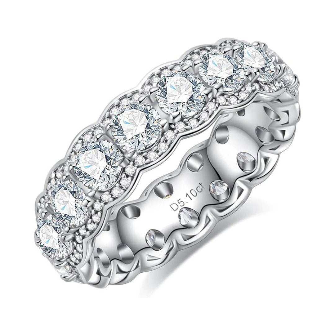 Round Cut Certified Moissanite Eternity Halo Ring Band